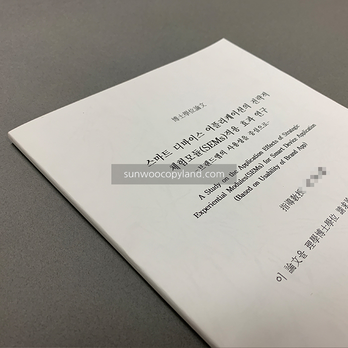 RT-0001 논문 본문 [논문] 제 본 : 무선 표지용지 : 레자크 흰색 내지용지 : 백상지 80g/㎡ 사 이 즈 : A4 ++ Note ++ 백상지 80g에 칼라/양면 출력으로 제작한 논문입니다. 목록 이전글RM-0001 팬북 19.03.08 다음글RP-0006 건축 포트폴리오 19.02.22