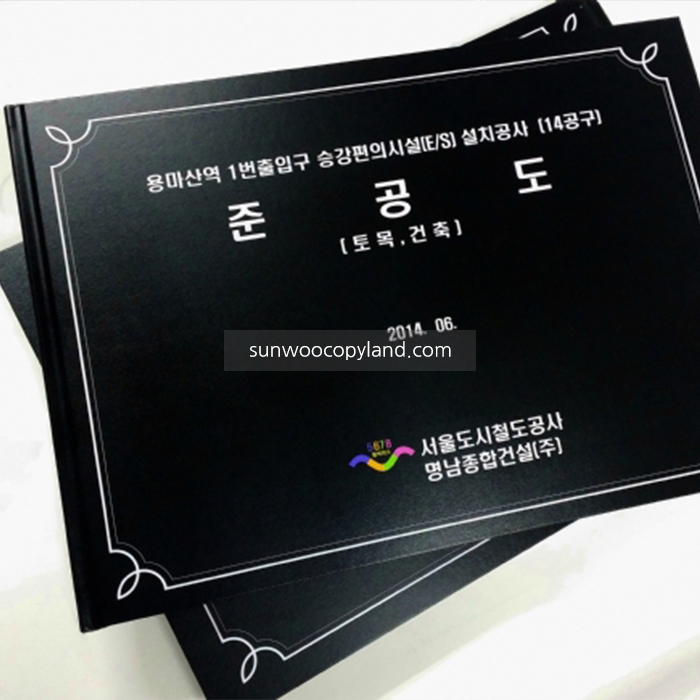 A3 평철로 하드커버를 씌워 제작한 준공도서입니다.